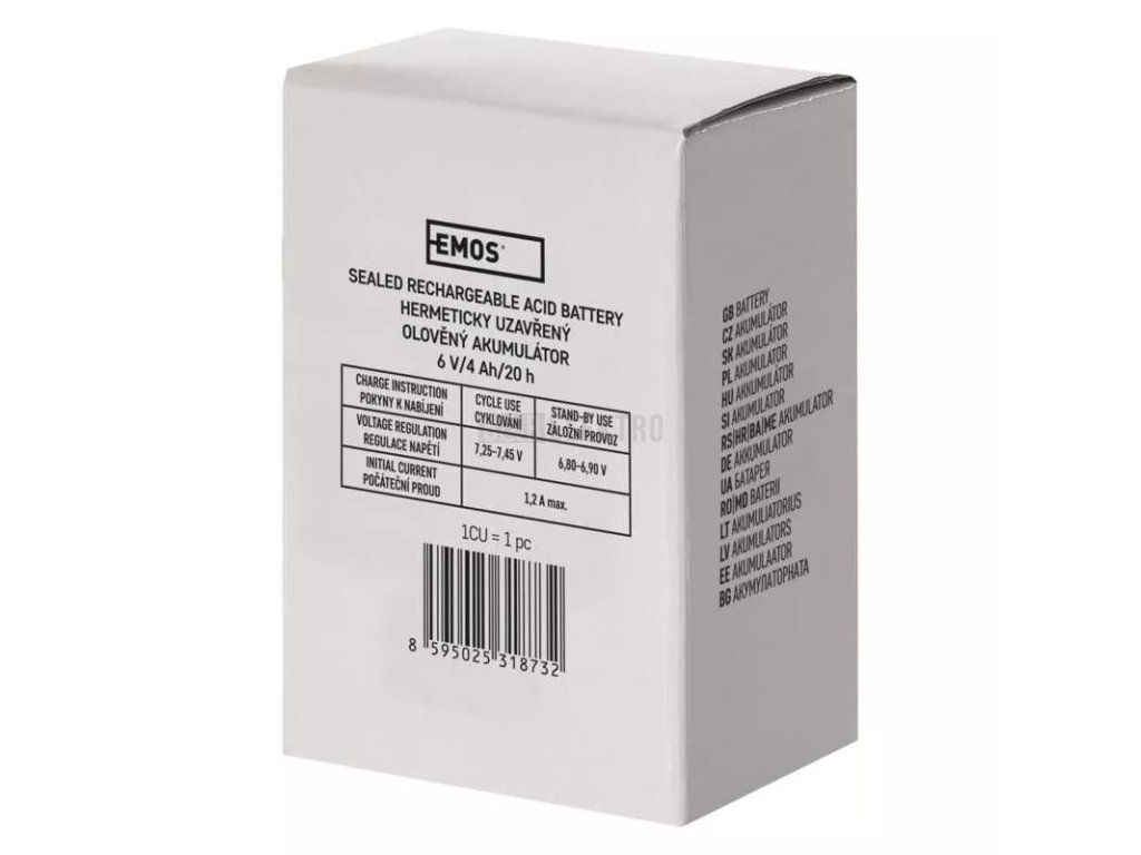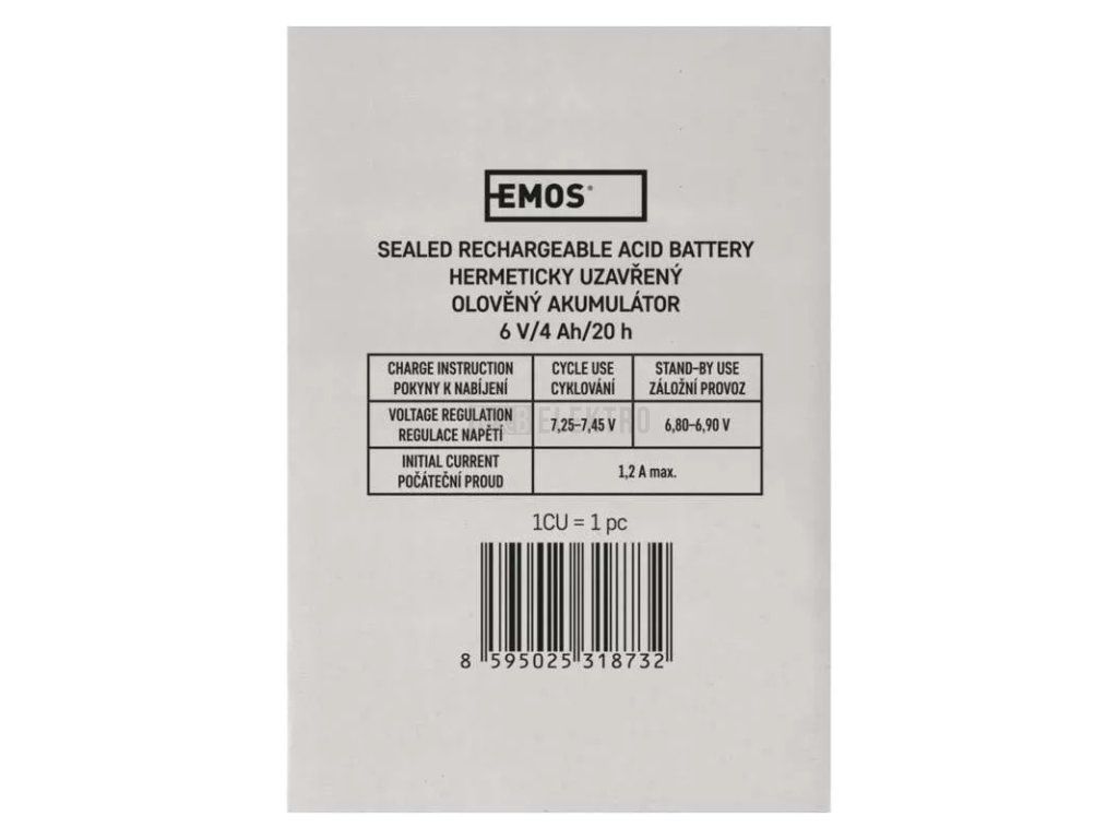 Náhradní baterie ke svítilně 3810GS;bezúdržbový6 V/4,2 Ahhmotnost 0,8 kgprodejní obal: 1 ksrozměr: 70 x 47 x 101 mmnáhradní bezúdržbový akumulátor 6 V 4,2 Ah ke svítilnám: JML 2999, JML 2936, 2931 NS,2867 CE, 100 RC, 3810hmotnost 850 gprodejní obal: 1 ksrozměry 70 x 47 x 102