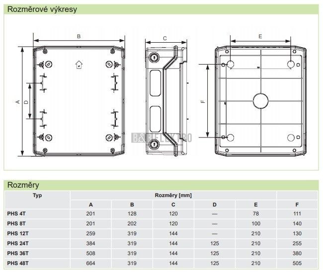 Rozvodnice 36-modulů na omítku 3x12M IP65 PHS 36T plastové průhledné dveře Noark...