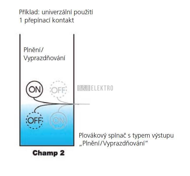 - typ CHAMP 2 : 1 přepínací kontakt pro plnění/vyprazdňování