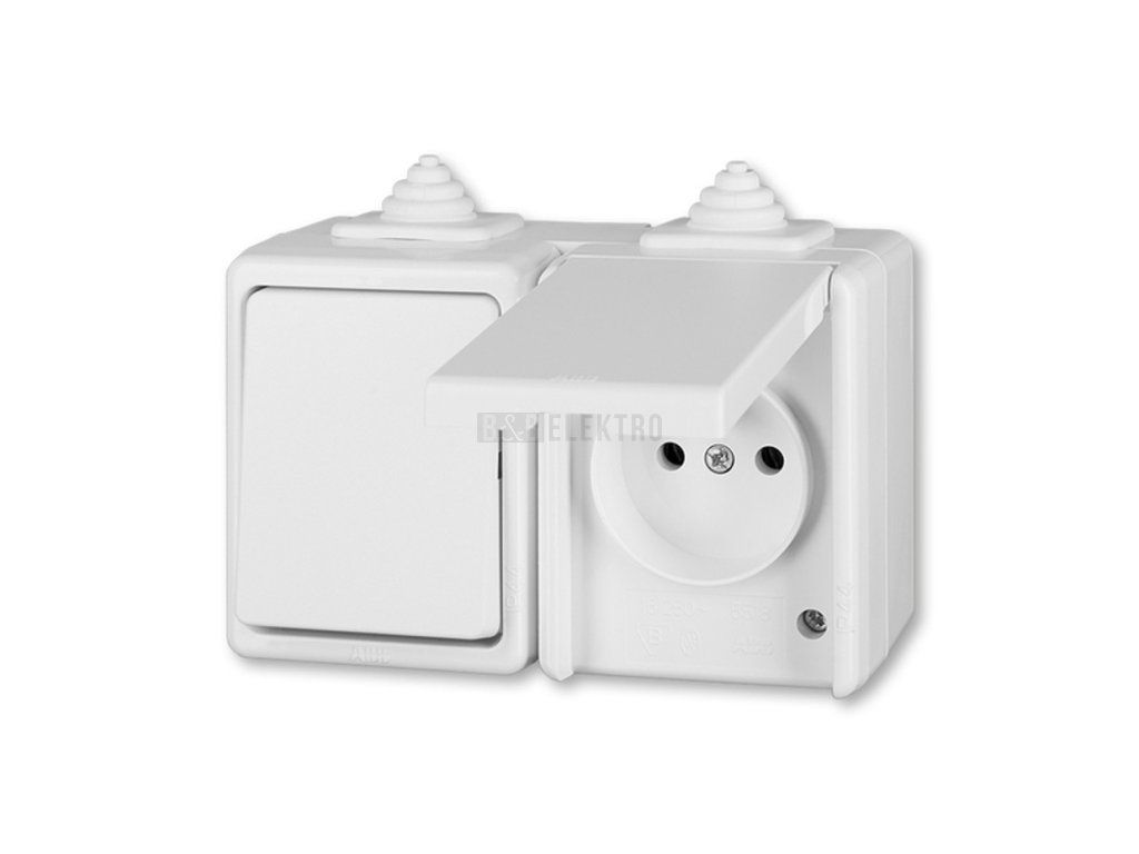 Praktik vypínač č.6 + zásuvka s víčkem 3932-20062 B kombinace IP44, bílá, ABB