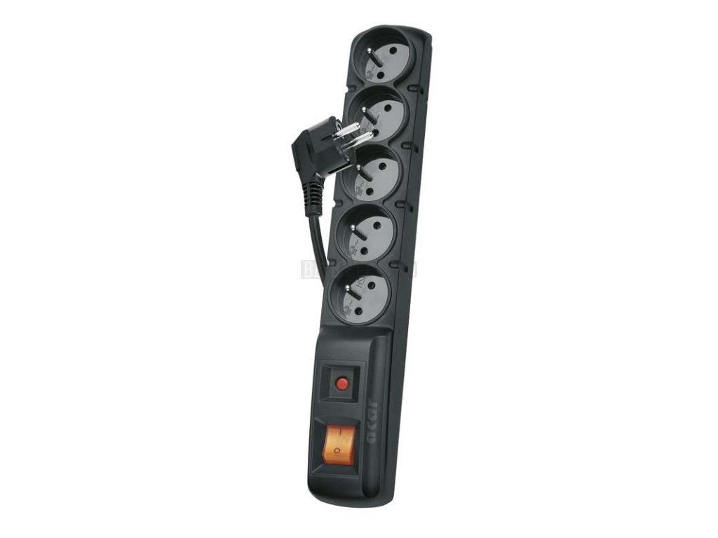 prodlužovací přívod 3 metry s 5 zásuvkami a přepěťovou ochranou v černé barvě