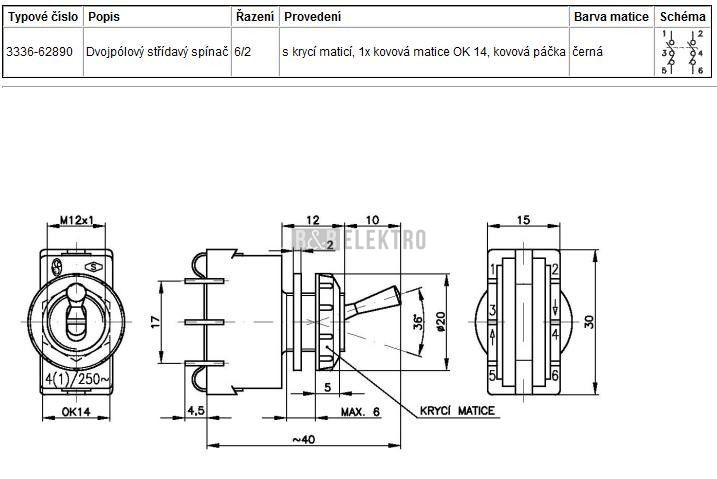 - Přepínač páčkový vestavný 4A/250V 3336-62890