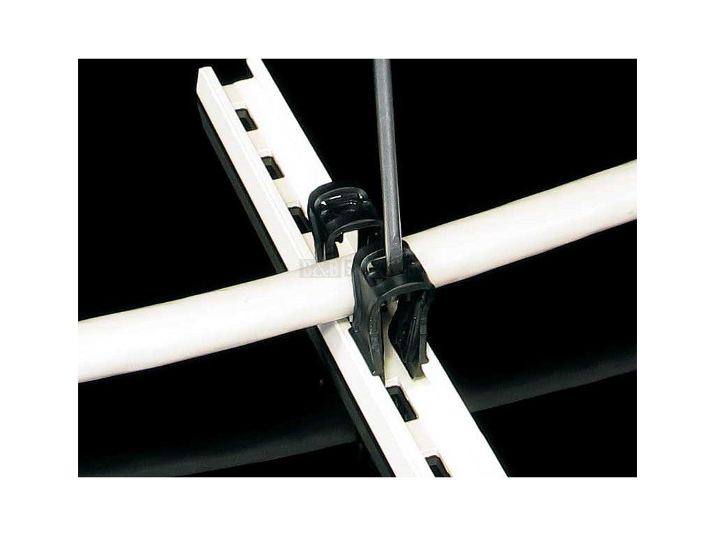 Montáž se provádí přišroubováním nebo přilepením spodní části příchytky na podložku, nasazením příslušného kabelu a natlačením vrchní části na