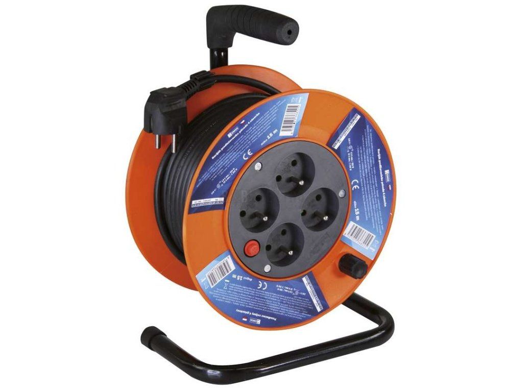 cívka s prodlužovacím kabelem 15m s vestavěnými 4 zásuvkami