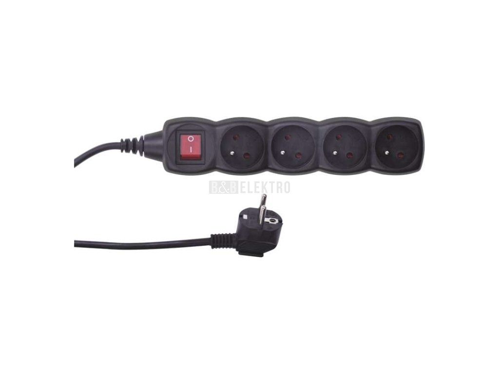 Prodlužovací kabel 5m/4zásuvky s vypínačem černá barva EMOS PC1415