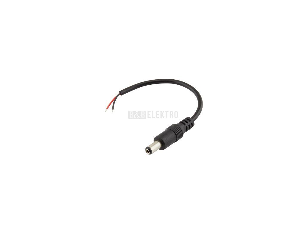 Napájecí kabel s konektorem DC 5,5 x 2,1mm, 1x vidlice, 15cm černý
