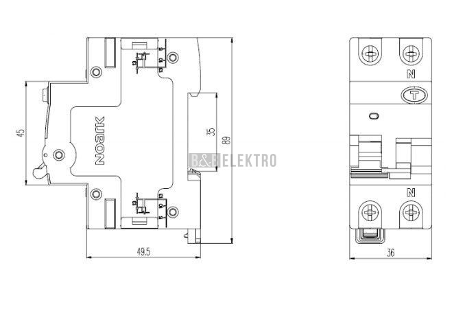 Proudový chránič 10A, Ex9BL-H 1P+N B10 30mA AC dvoupólový Noark 107382
