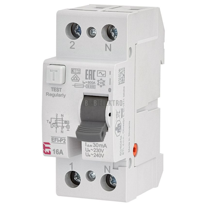 Proudový chránič 16A, EFI-P2 AC 16/0,03 10kA 30mA AC dvoupólový ETI 002061210