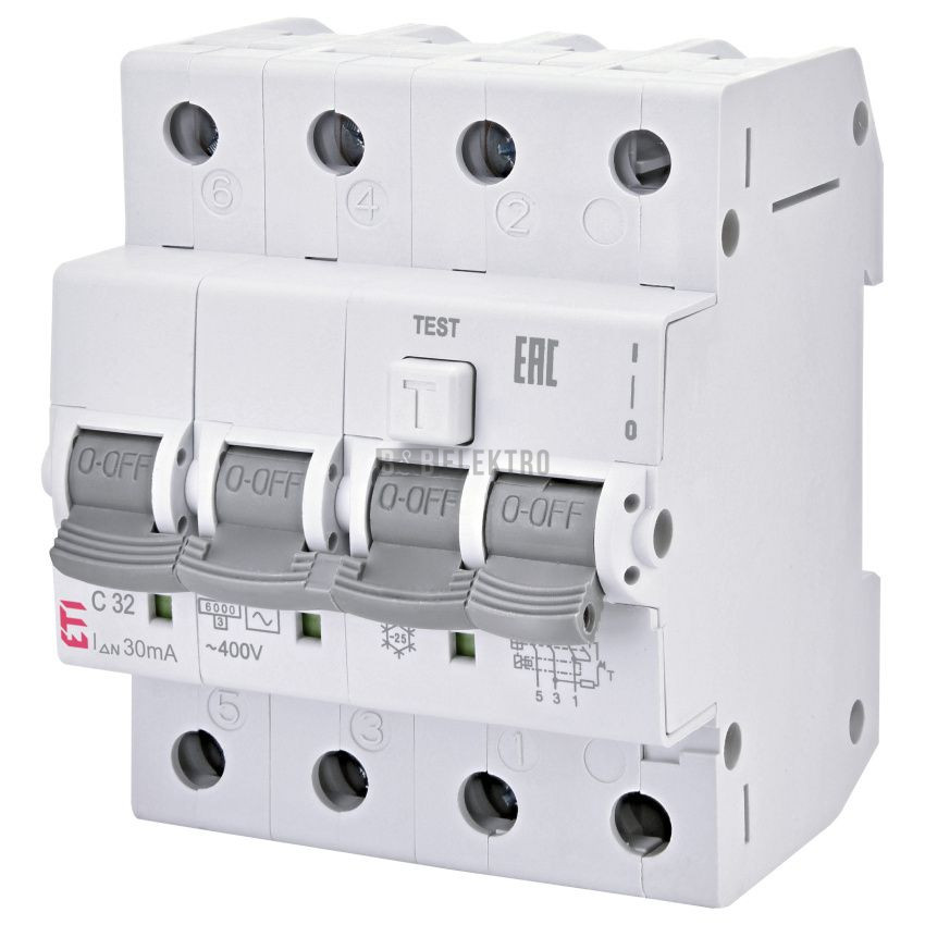 Proudový chránič s jističem 32A, KZS-4M 3p AC C32/0,03 10kA (bez N svorky) 30mA AC ETI 002174827