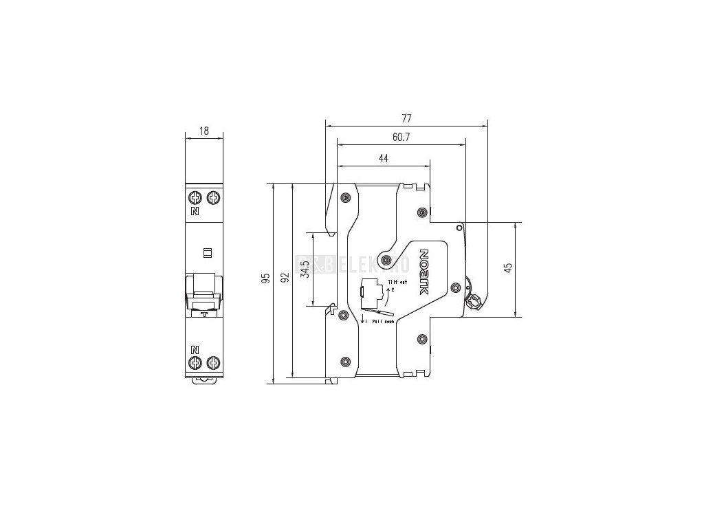 Proudový chránič s jističem 40A, Ex9NLE EL 40/1/C (6kA) 1+Npól, AC, jednomodulový Noark 111159