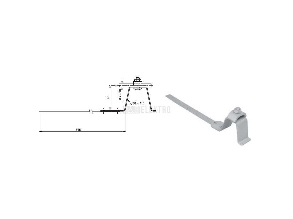 Popis: Slouží k mechanickému upevnění hromosvodného vodiče na taškových střechách se zámky. Uchycení podpěry za první střešní lať.
