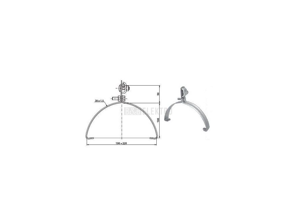 PV 15a Cu podpěra upevnění vodiče hromosvodu na hřebenáč střechy, 190-220mm, provedení Cu