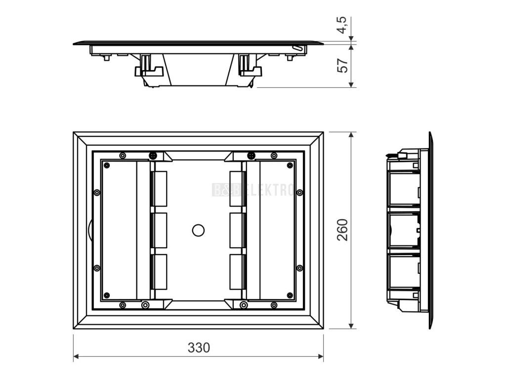 Umožňuje montáž modulárních přístrojů 45 x 45 mm (max. 6 ks) firem ABB, PEHA, Legrand, OBO Bettermann a jiné přístroje shodné konstrukce.