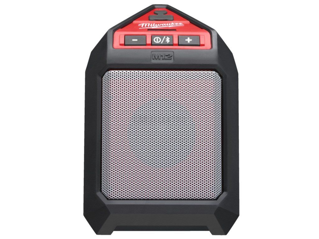 Pracovní Bluetooth reproduktor Milwaukee M12 JSSP na staveniště s pokročilou technologií Bluetooth®s bezdrátovým připojením až k 10 m vzdáleným zdrojům.