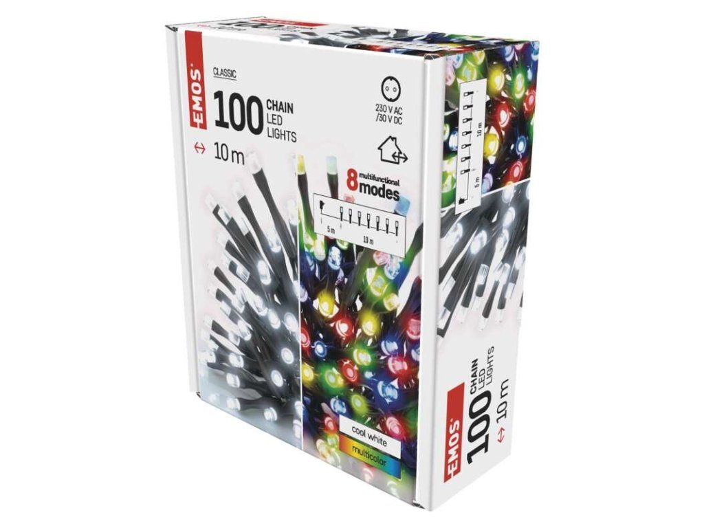 Řetěz LED vánoční, délka 10m, studená bílá/multicolor, IP44, 8 funkcí, EMOS D4AJ01