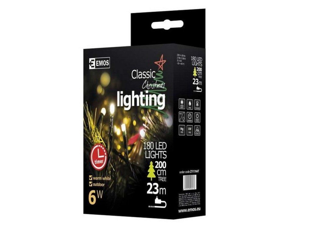 Řetěz LED vánoční, délka 18m + časovač, teplá bílá CLASSIC, IP44, EMOS ZY1704T