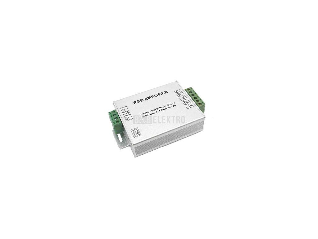 Tento zesilovač slouží pro buzení RGB stripů v případech, kdy je požadováno buzení LED RGB stripů s odběrem přesahujícím možnosti vlastních RGB kontrolerů. Kovové provedení s uchyty a připojovacími svorkovnicemi a konektorem.