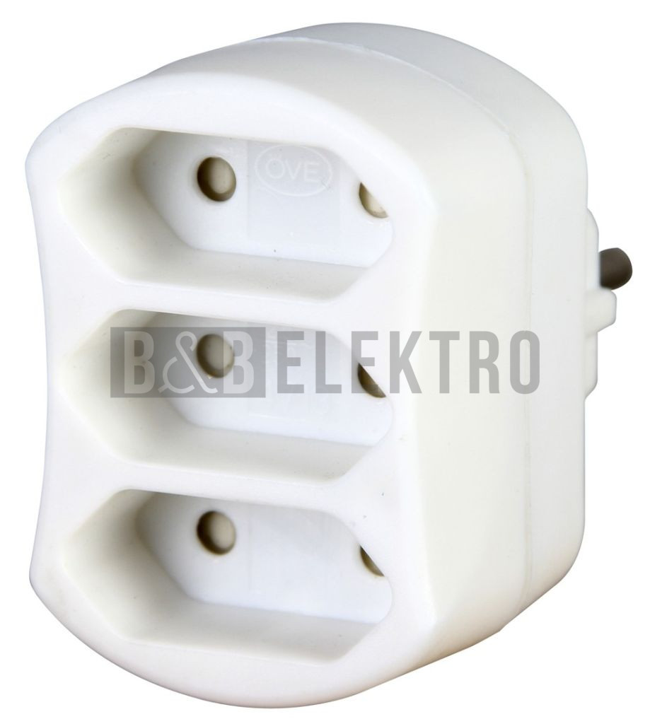 Rozbočka 2x kulatá + 1x plochá zásuvka typ EF-7 bílá barva