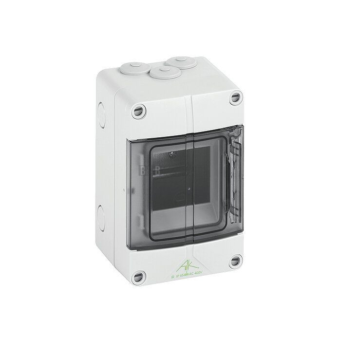 Rozvaděč obsahuje jednu řadu pro 3 moduly a je vybaven nahoře a dole metrickými předlisy pro univerzální vstup vodičů, což umožňuje použití šroubení nebo dvojitých membránových vývodek. Nahoře jsou předmontované pružné průchodky DMS M20, což usnadňuje instalaci a zajišťuje optimální ochranu kabeláže.