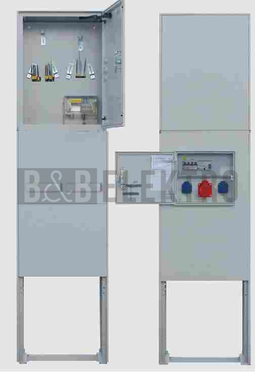elektroměrová skříň je umístěna zepředu a zásuvková skříň zezadu