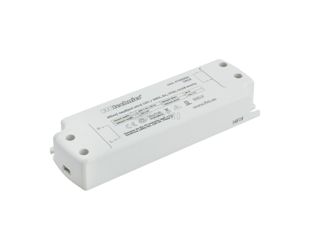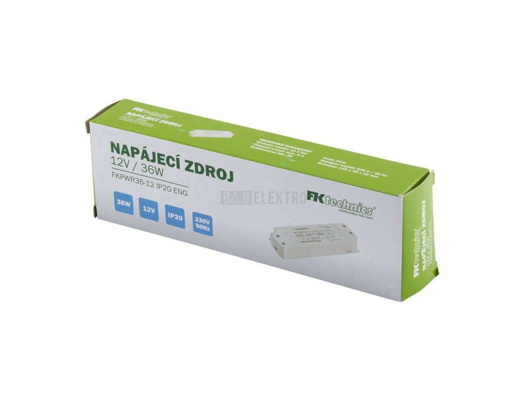 Spínaný zdroj 230 V / 12 V, 3 A (36 W) s krytými svorkami. Tento zdroj je vhodný např. pro napájení LED pásků vyžadujících dobře stabilizované stejnosměrné napětí 12 V. Maximální proudové zatížení zdroje je 3 A. Díky krytým svorkám nehrozí nebezpečí dotykem živých částí