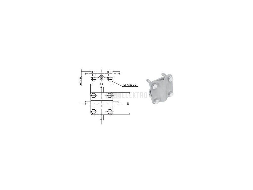 SK E svorka křížová šroub M6 pro připojení kruhových vodičů, FeZn