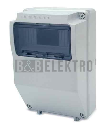 Plastová skříň AcquaCOMBI 3958 s prostorem pro umístění zásuvek a ovládacích přístrojů, ve vyšším krytí IP65, 9mod., rozměry: 330x215x150mm, svorkovnice PE/N součástí, montáž na omítku, průhledná dvířka, barva: světle šedá.