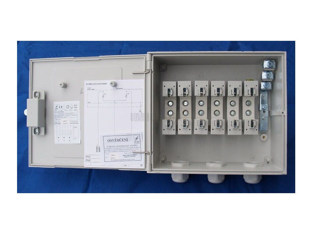 Rozváděče jsou dodávány s vnitřní výzbrojí bez pojistkových vložek. Rozváděče určené pro montáž
