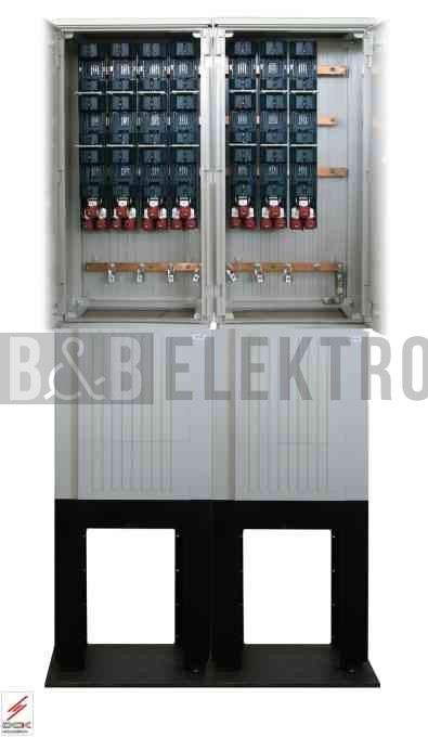 Skříně s pojistkovými lištami, nebo odpínači jsou dodávány s vnitřní výzbrojí bez pojistkových vložek. Fázové přípojnice jsou Cu pokovené s nalisovanými maticemi. Pojistkové lišty (odpínače) je možno dodat s připojovacími praporci W včetně třmenových svorek W nebo se šrouby. V případě potřeby rozšíření počtu vývodů lze nahradit jednu pojistkovou lištu vel. 2 dvěma lištami vel. 00. Pokud bude potřeba připojit do skříně více přívodů je nutné tyto přívody prostřídat s vývody tak, aby nebyla překročena maximální uvedená zatížitelnost pracovních přípojnic rozváděče.