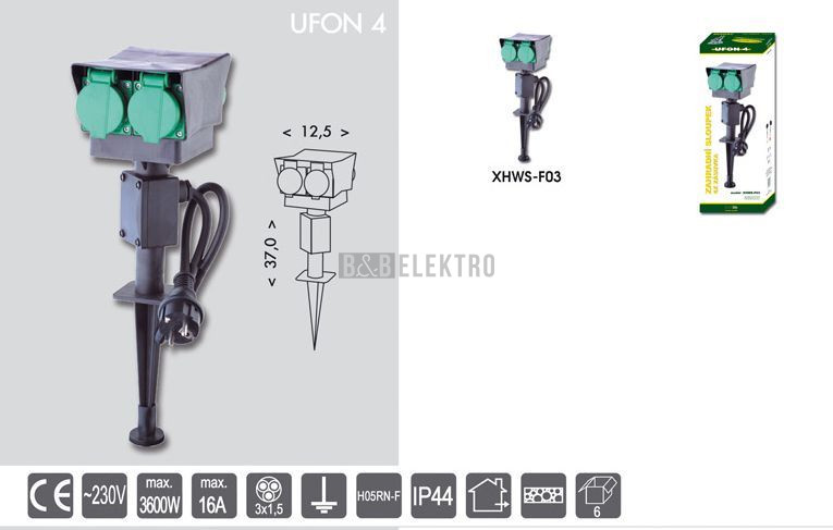 Sloupek zahradní UFON 4 XHWS-F03 4 zásuvky 230V,3600W,IP44