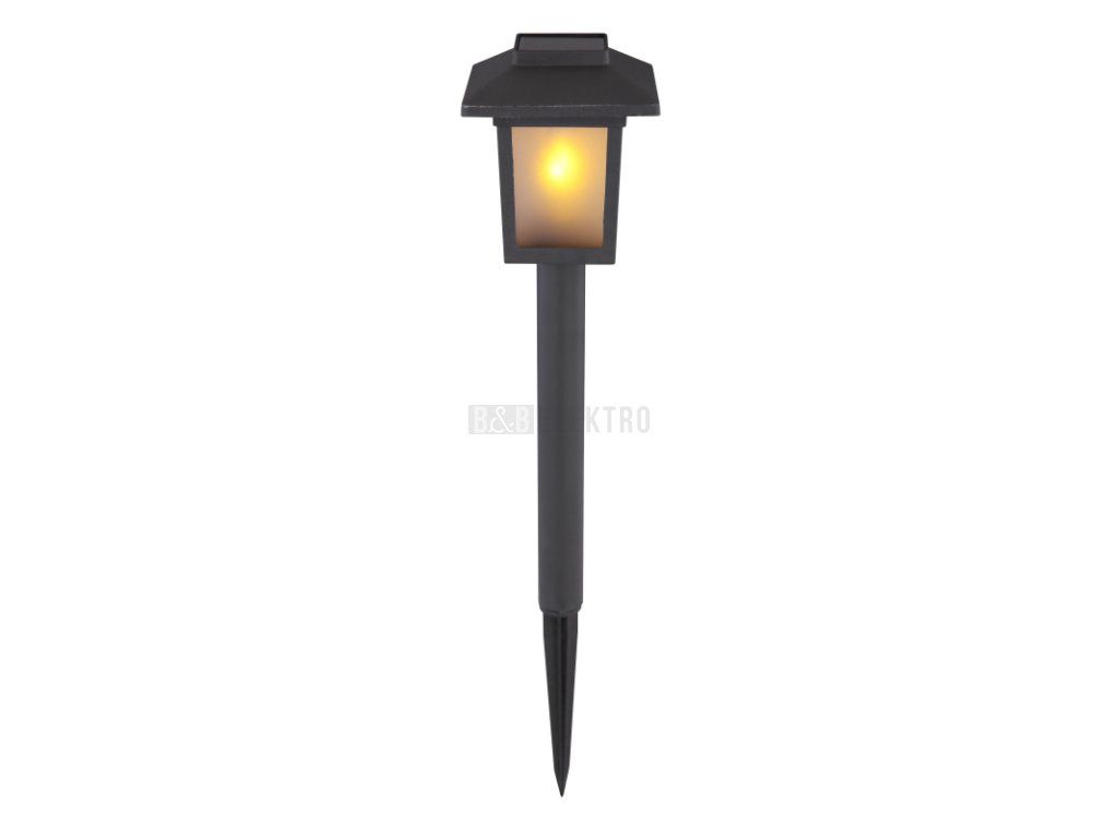 Solární svítidlo, plast černý, plast satinovaný, efekt ohně, 3ks v balení, IP44, vypínač, včetně baterie 1x AA 1,2V 200mAh Ni-Mh, DxŠxV: 78x78x368 včetně 10xLED 0,1W 3V, žluté