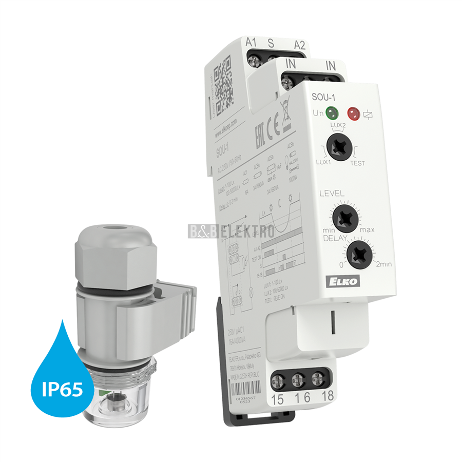 Soumrakový spínač s fotosenzorem SOU-1 + fotosenzor SKS-100/UNI Elko EP