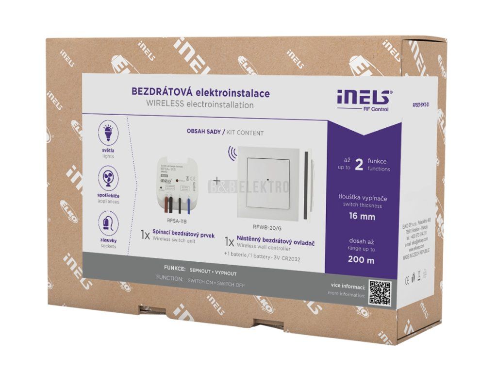 V setu naleznete spínací prvek RFSA-11B a nástěnný ovladač RFWB-20 v bílé barvě.