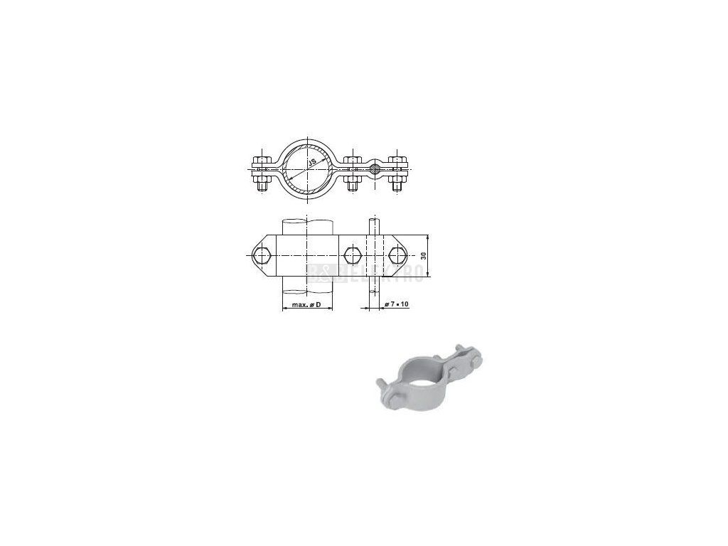ST 5 svorka pro spojení hromosvodního vodiče s potrubím, průměr 44-49mm, Js 1/2", FeZn