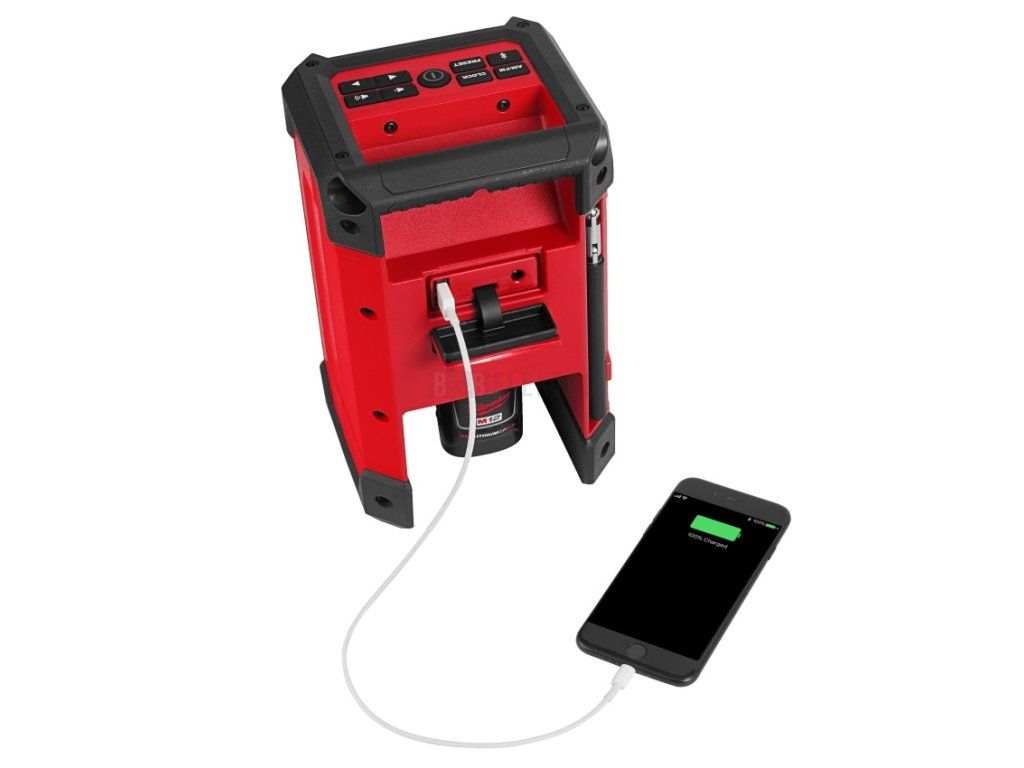 - Zabudovaná funkce nabíječky umožňuje rychlé a pohodlné nabíjení jakéhokoli akumulátoru M12™ nebo elektronického zařízení přes výstupní USB port