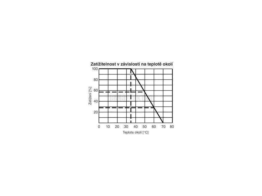 Při teplotě okolí vyšší než 35 °C zatížitelnost klesá (cca o 3 % / °C).