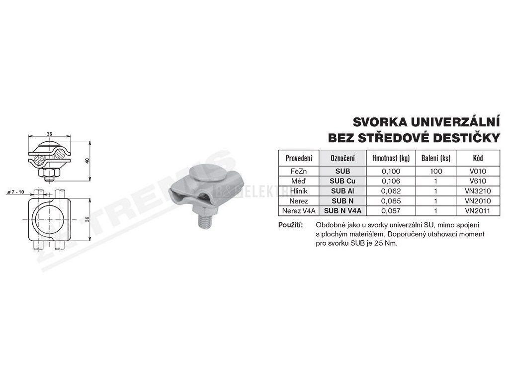 SUB Al svorka univerzální bez středové desky AlMgSi