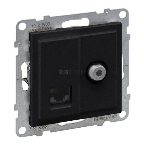 Suno kombinovaná TV s F konektorem + datová zásuvka RJ45 CAT.6 UTP nestíněnná, černá, Legrand 721462