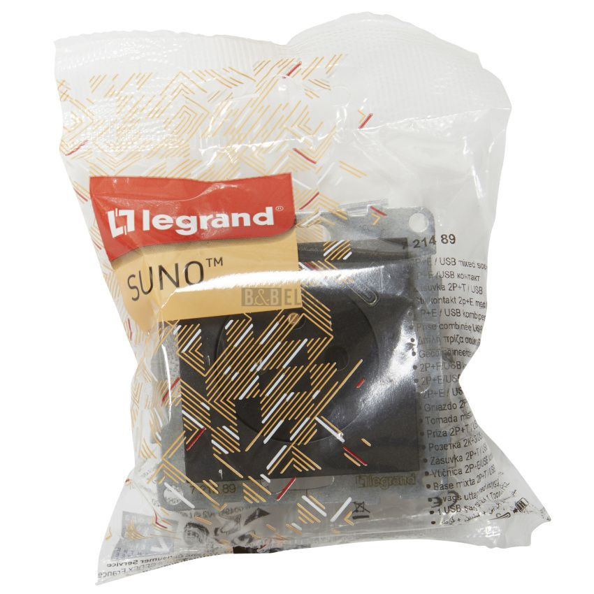 Suno zásuvka 2p+T s USB-C nabíječkou, černá, automatické svorky, Legrand 721489