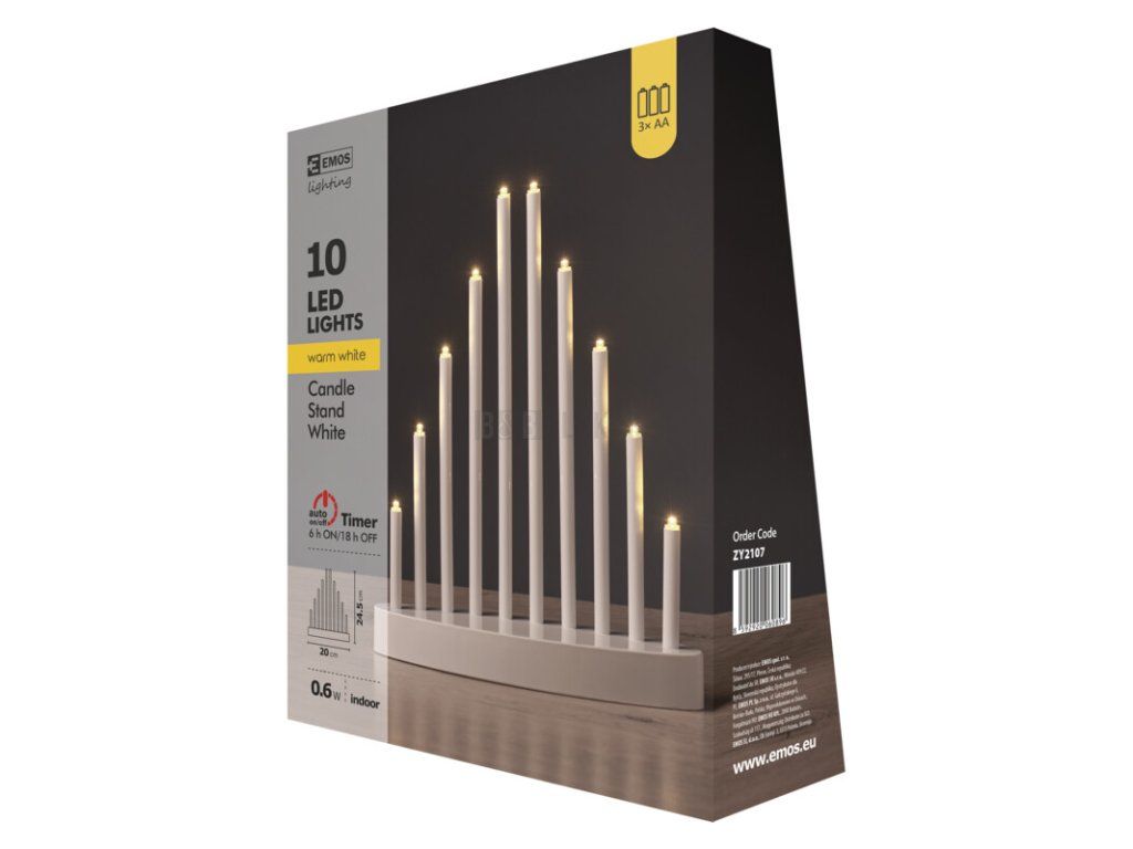 Svícen dekorační LED bílý, 3xAA napájení, teplá bílá, časovač, EMOS DCAW01