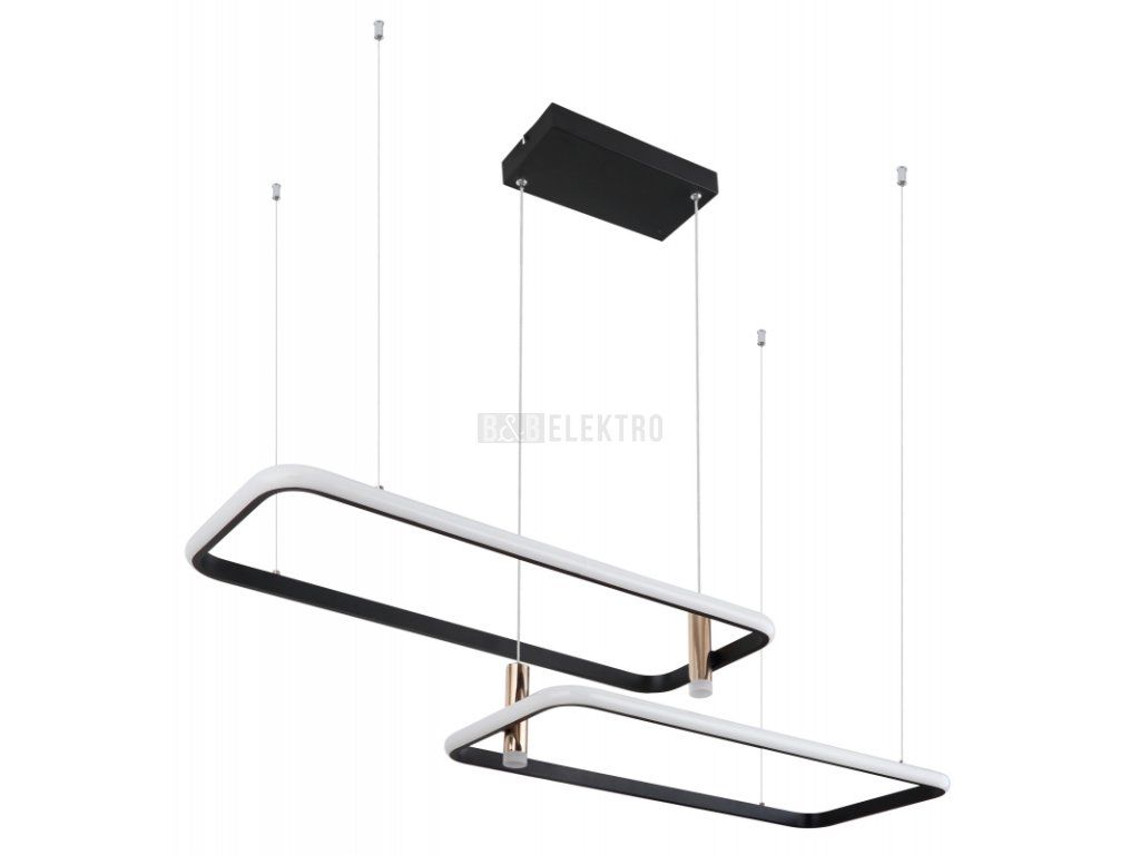 Závěsné svítidlo, kov, hliník černý, kov zlatý, akryl opál, paměťová funkce, noční světlo, stmívatelné, dálkové ovládání, fixace barvy, DxŠxV: 1015x455x1500, LED 55W 230V, 5500lm zdroj, 2300lm výstup, změna barvy světla 2700-6000K