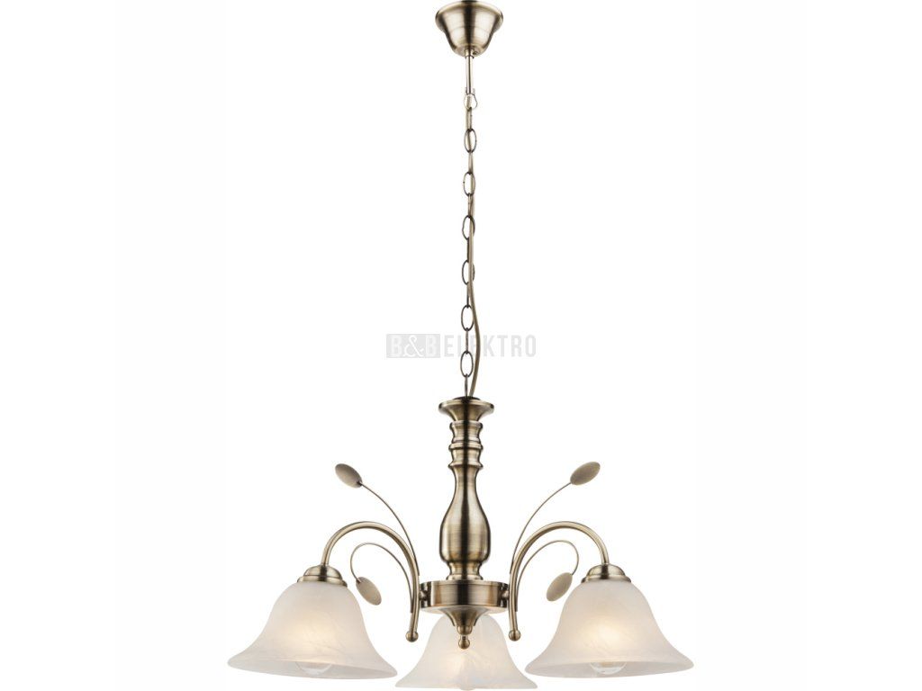 Svítidlo GLOBO 69007-3H POSADAS, E27 3x60W, mosaz, sklo bílé alabastr, závěsné