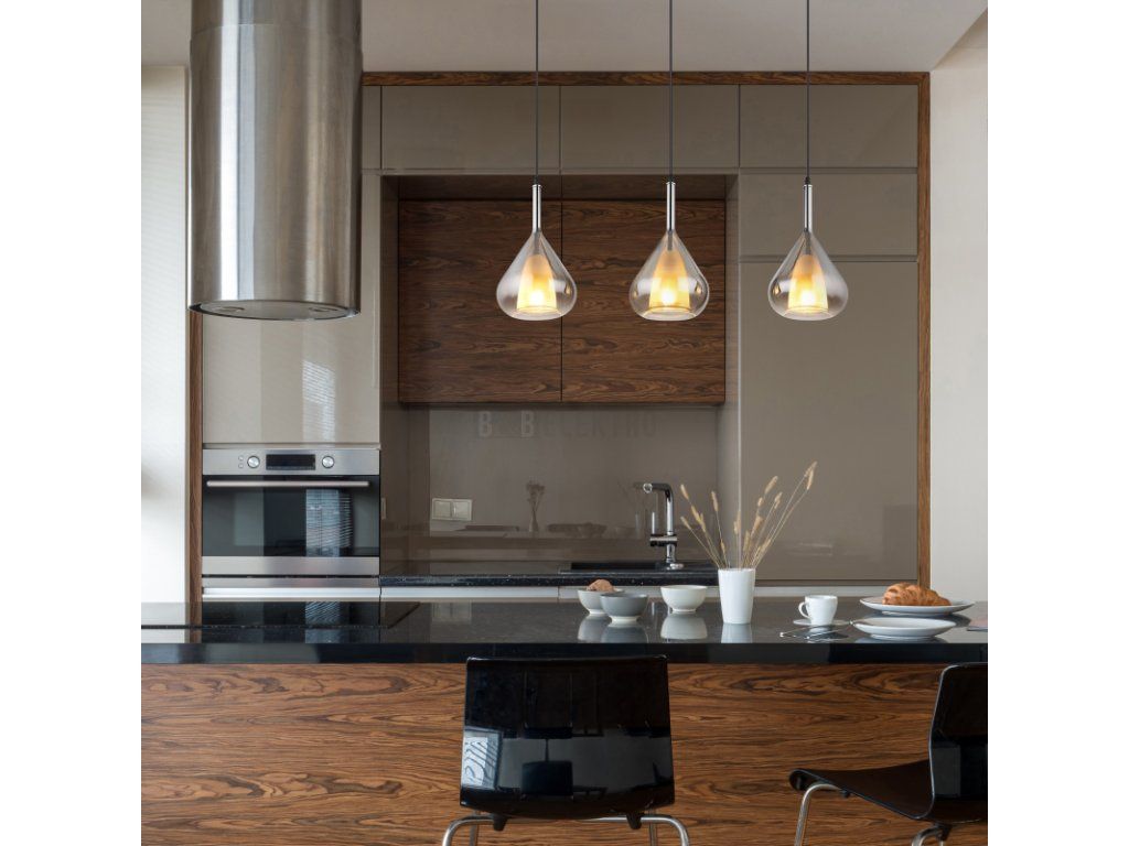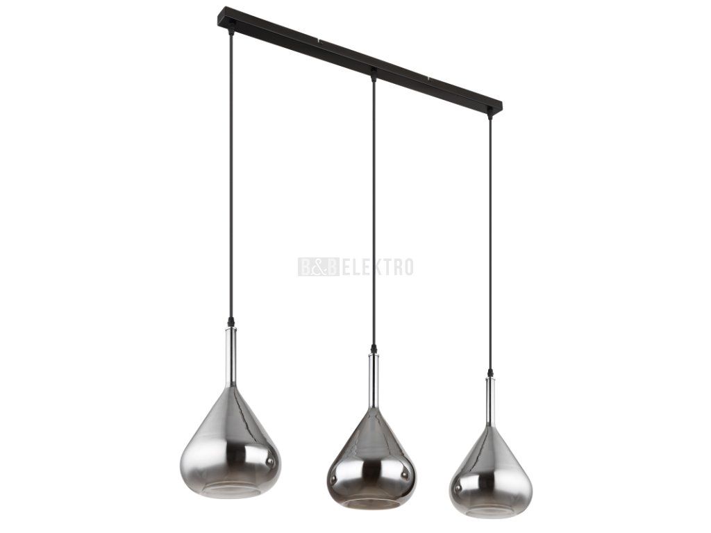 Stylové závěsné svítidlo z černého kovu a kouřového skla je ideální nad jídelní stůl nebo do obývacího pokoje. Nabízí tři patice E27 (max. 3×60W, 230 V) a možnost použít LED žárovky. Díky rozměrům 900 × 200 × 1400 mm a nastavitelné výšce se hodí do moderních i industriálních interiérů. Černý kabel ladí s minimalistickým designem. Svítidlo se dodává bez žárovek.