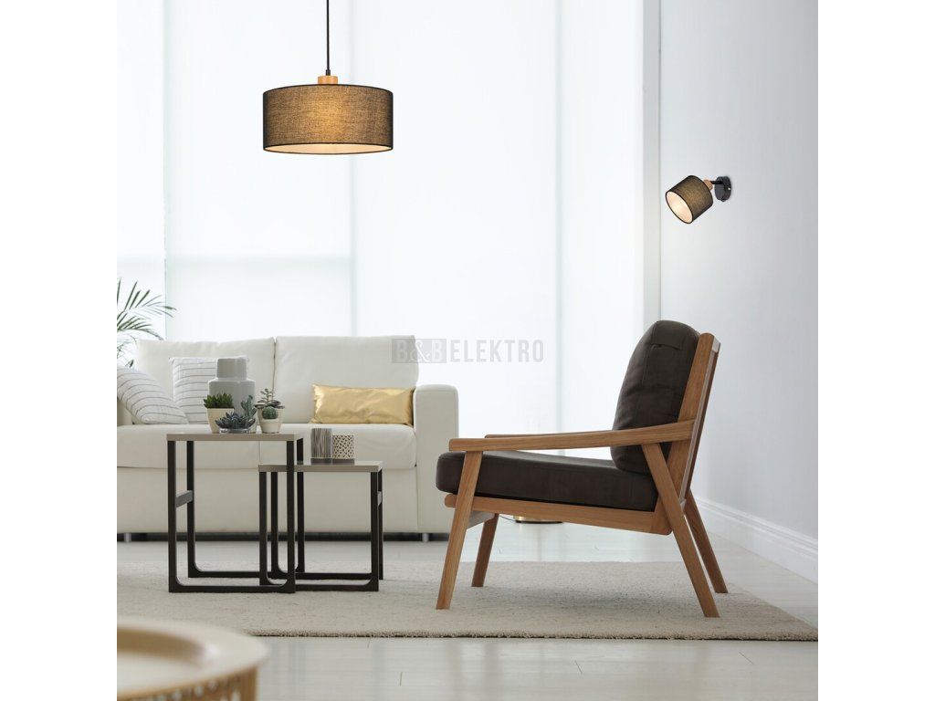 Závěsné svítidlo Miguel v industriálním stylu doporučujeme především do tradičních nebo moderních obýváků, jídelen nebo ložnic. Toto svítidlo vyrobené v barevné kombinaci dub a matná černá lze upevnit na zeď pomocí kulatého dekoračního podstavce. Svítidlo je vyrobené z kovu a dřeva. Svítidlo Miguel lze použít s jednou žárovkou o výkonu až 40W. Typ patice je E27. V závislosti na vašich preferencích si můžete pro toto svítidlo zvolit teplý nebo přirozený bílý zdroj světla. Cylindrické textilní stínidlo, které je ve spodní části otevřeno, poskytuje díky své černé barvě střídmé atmosférické osvětlení. Rozměry závěsného svítidla Miguel jsou následující: průměr 350mm, vzdálenost od stropu 1500mm, instalační průměr 90mm. Tento model je dodáván bez světelného zdroje.