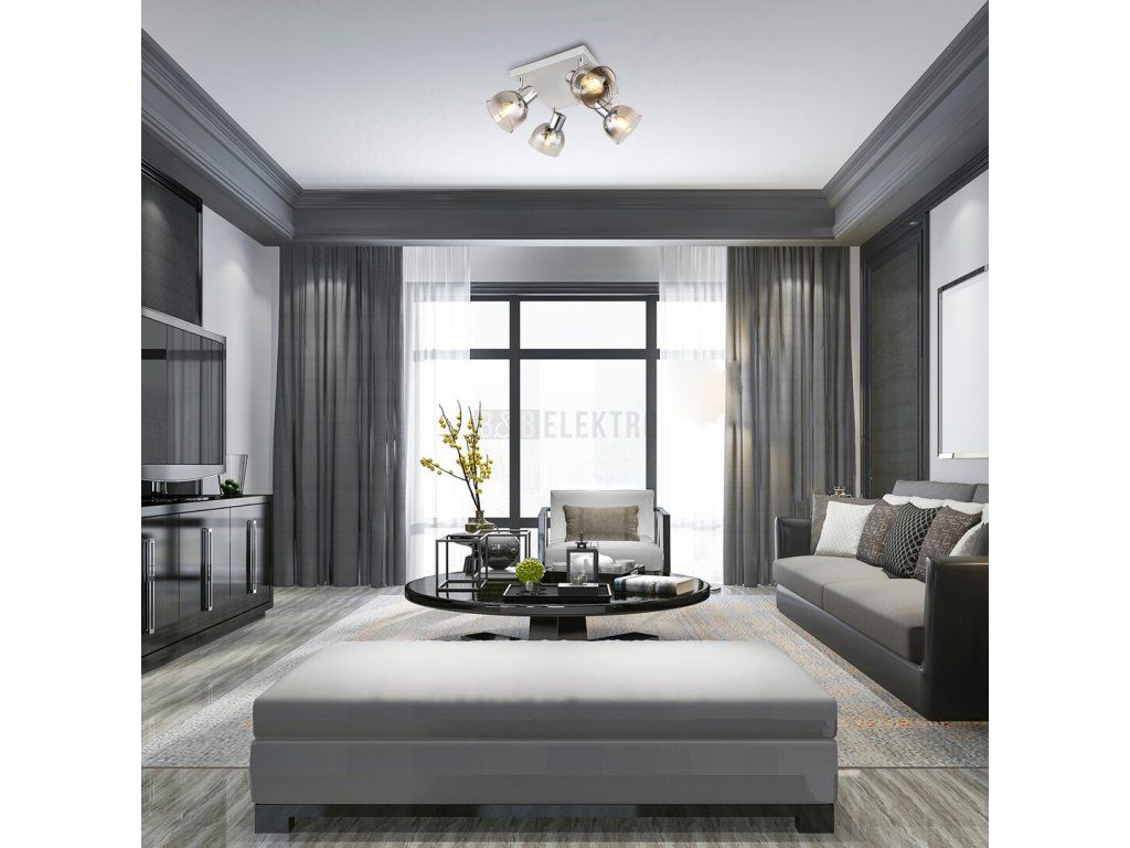 Moderní stropní bodové svítidlo Tarien se 4 žárovkami může být skvělou volbou do různých místností vašeho bytu: můžete jej namontovat do obývacího pokoje, ložnice, jídelny nebo i do kuchyně. Železné svítidlo v barvě chromu doplňují stínítka ve tvaru deštníku z tónovaného skla. Svítidlo Tarien lze připevnit ke stropu pomocí velké čtvercové dekorativní základny. Toto svítidlo lze použít se čtyřmi žárovkami, každá s výkonem do 40W. Typ patice je E14. V závislosti na vašem vkusu a místě instalace si můžete pro toto svítidlo zvolit teplé nebo přírodní bílé zdroje světla. Díky flexibilním hlavám svítidla můžete světlo nasměrovat dle vlastního uvážení. Rozměry svítidla Tarien jsou 220x220mm, vzdálenost od stropu je 150mm. Tento model je dodáván bez světelných zdrojů.