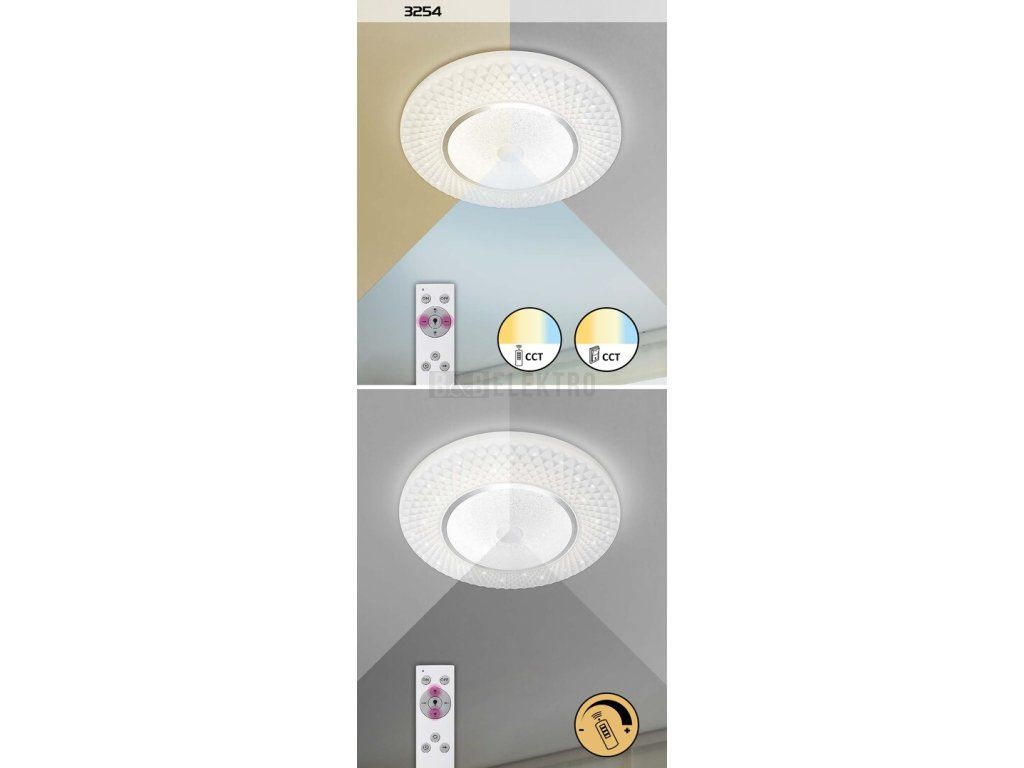 Jednoduchý design moderního kulatého stropního svítidla Tornado je spojen s několika extra funkcemi. Bude skvělou volbou do obývacího pokoje, ložnice či pracovny. Kovové svítidlo chromové barvy je doplněno o bílé plastové stínidlo s hvězdným efektem. Svítidlo Tornado obsahuje vestavěný LED světelný zdroj s výkonem 72W, světelným tokem 5470 lumenů a mimořádnou životností 50 000 hodin! Barevnou teplotu tohoto stropního svítidla lze nastavit mezi 3000-6500K podle vašich potřeb, tzn. můžete nastavit teplé, přirozené nebo studené bílé světlo. Svítidlo Tornado je stmívatelná, to znamená, že lze nastavit i jeho jas. Dalšími extra funkcemi jsou časovač, paměť a funkce nočního osvětlení. Všechny doplňkové funkce tohoto inteligentního svítidla lze nastavit pomocí dálkového ovladače. Teplotu barev lze navíc nastavit i nástěnným vypínačem. Průměr tohoto stropního svítidla je 480 mm, vzdálenost od stropu je 70 mm. Na tento model poskytujeme 5letou záruku.