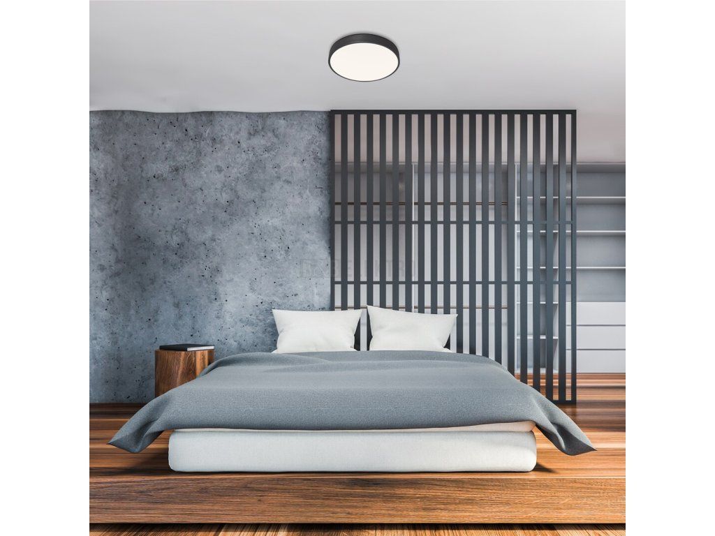 Kulaté stropní svítidlo Tesia doporučujeme těm, kteří chtějí mít ve svém moderním obýváku nebo ložnici inteligentní svítidlo, které má jednoduchý, čistý vzhled, ale současně nabízí několik dalších funkcí. V případě svítidla Tesia je matné černé kovové svítidlo doplněné bílým plastovým stínítkem. Svítidlo obsahuje vestavěný světelný zdroj LED s výkonem 60 W, světelným tokem 5 000 lumenů a teplotou barvy, kterou je možné podle potřeby nastavit mezi 3 000-6 000 K pomocí nástěnného vypínače nebo dálkového ovladače. Životnost svítidla je velmi působivá: 50 000 hodin! Svítidlo těšit lze také ztlumit, to znamená, že jeho jas lze měnit podle potřeby pomocí dálkového ovladače. Mezi další doplňkové funkce patří paměťová funkce, časovač a funkce nočního světla. Průměr tohoto stropního svítidla vyrobeného v extrémně tenkém provedení je 600 mm, vzdálenost od stropu je pouze 50 mm.
