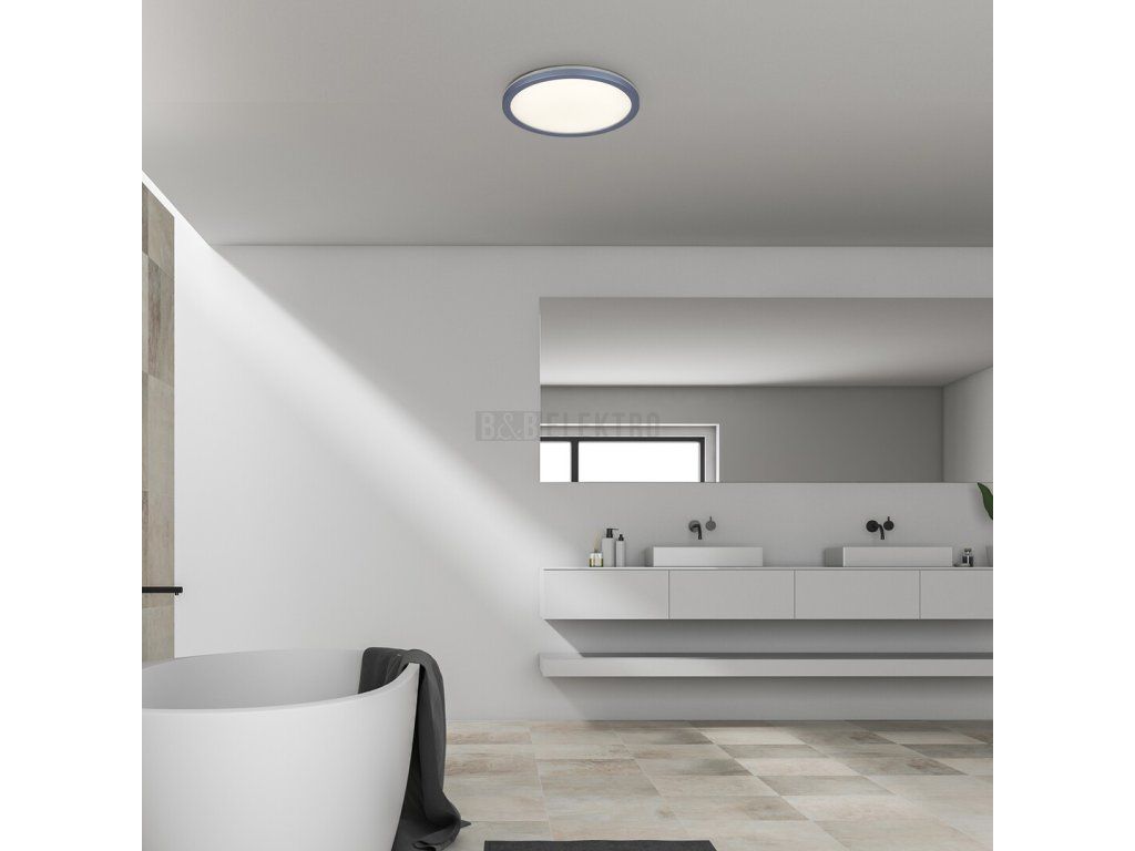 Díky svému funkčnímu designu bude stropní svítidlo Lambert vyrobeno z plastu skvělou volbou téměř do každé místnosti vašeho bytu. Kulatý model stříbrné barvy má krytí IP44, tzn. je chráněný proti malým pevným předmětům i stříkající vodě ze všech stran. Díky této vlastnosti doporučujeme, aby se používal nejen ve vaším obývacím pokoji nebo na chodbě, ale i ve vaší koupelně. Svítidlo Lambert je vybaveno vestavěným LED světelným zdrojem s výkonem 15 W, svítivostí 1500 lumenů a životností 25 000 hodin. Světelný zdroj má barevnou teplotu 4000 K, takže vyzařuje přirozené bílé světlo. Stropní svítidlo s průměrem 280 mm má extra tenký design se vzdáleností od stropu pouze 28 mm. Na svítidlo Lambert se poskytuje 5-letá záruka.