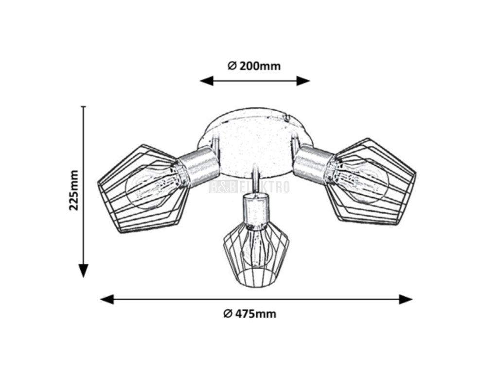 Trojité bodové svítidlo Belano v průmyslovém stylu bude puritánskym nábytkem ve vašem moderním obývacím pokoji, ložnici nebo pracovně. Celokovové matné černé svítidlo je ozvláštněné mřížkovými stínítky a je možné jej připevnit na strop pomocí velké okrouhlé dekorativní základny. Svítidlo Belano lze použít s třemi žárovkami, z nichž každá má výkon až 40 W, patice je E27. Světlo nerušeně vytéká z bodového svítidla přes symbolické stínidla podobné klecím. Pokud chcete vylepšit intimní domácí atmosféru, vyberte si pro toto svítidlo teplé bílé světelné zdroje. Rozměry trojitého bodového svítidla Belano jsou následující: průměr 475 mm, vzdálenost od stropu 225 mm, instalační průměr 200 mm. Tento model se dodává bez světelných zdrojů.