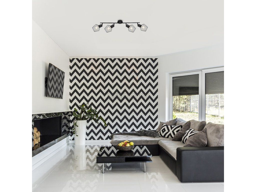 Bodové svítidlo Belano se 4 žárovkami v průmyslovém stylu bude puritánskym nábytkem ve vašem moderním obývacím pokoji, ložnici nebo pracovně. Celokovové matné černé svítidlo je ozvláštněné mřížkovými stínítky a je možné jej připevnit na strop pomocí malého kulatého ozdobného podstavce. Svítidlo Belano lze použít se čtyřmi žárovkami, z nichž každá má výkon až 40 W, patice je E27. Světlo nerušeně vytéká z bodového svítidla přes symbolické stínidla podobné klecím. Pokud chcete vylepšit intimní domácí atmosféru, vyberte si pro toto svítidlo teplé bílé světelné zdroje. Rozměry bodového svítidla Belano se 4 žárovkami jsou následující: šířka 755 mm, vzdálenost od stropu 265 mm, instalační průměr 110 mm. Tento model se dodává bez světelných zdrojů.